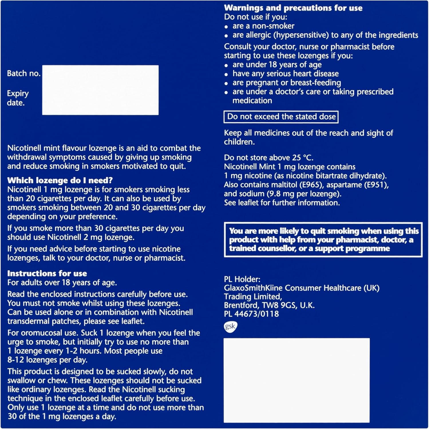 Nicotinell Mint Lozenge 1mg (204 Lozenges), Stop Smoking Aid, Sugar Free Nicotine Lozenges, Fresh Mint Flavour, 1mg Regular Strength for Light Smokers, Quit Smoking Aid